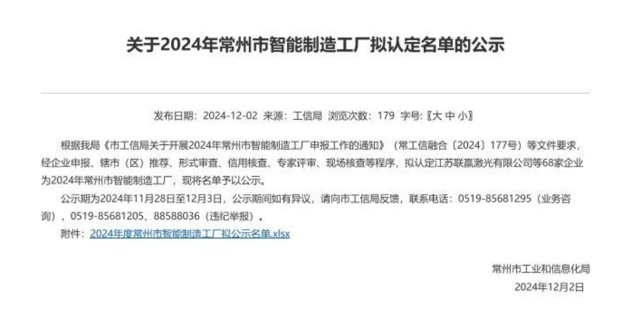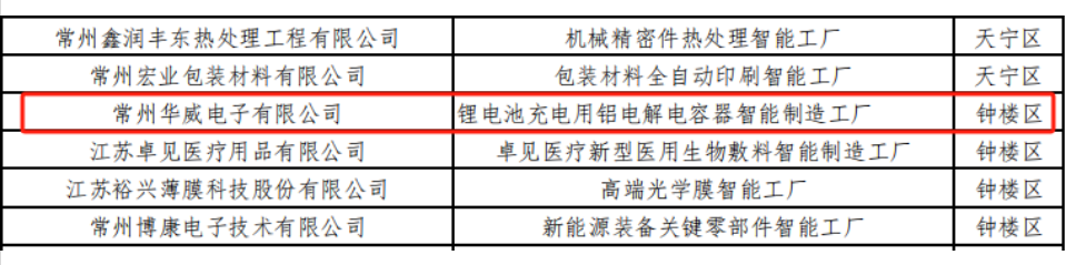冬迎碩果,佳績(jī)連連!近日,常州市工業(yè)和信息化局發(fā)布2024常州市智能制造工廠擬認(rèn)定名單,常州華威電子榮登榜單!