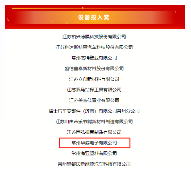4、榮獲設(shè)備投入獎